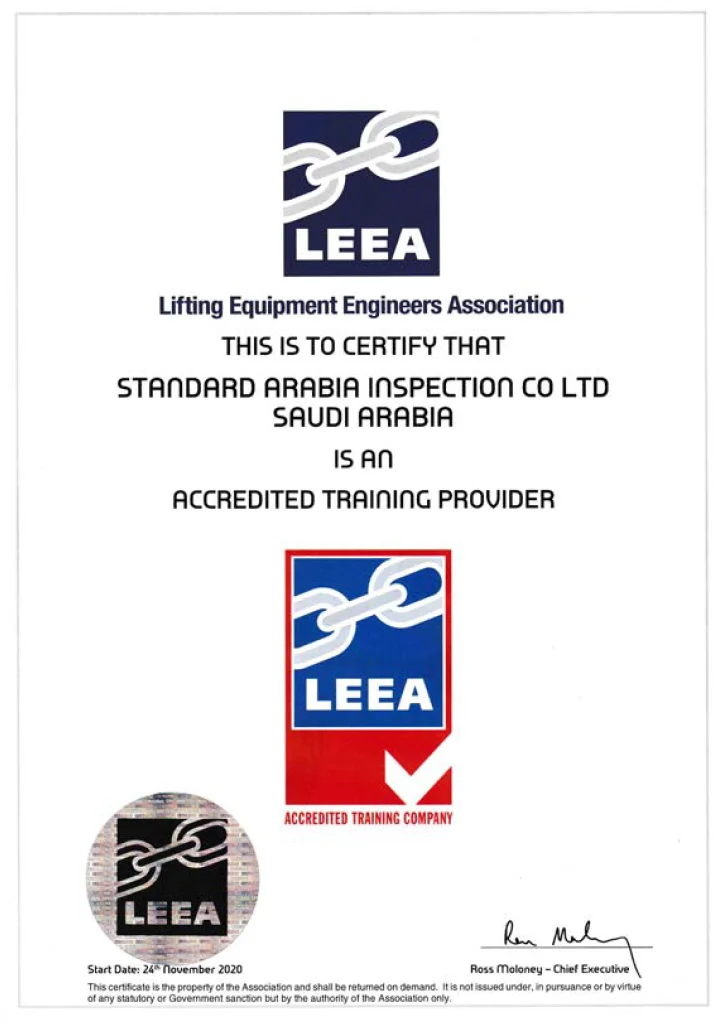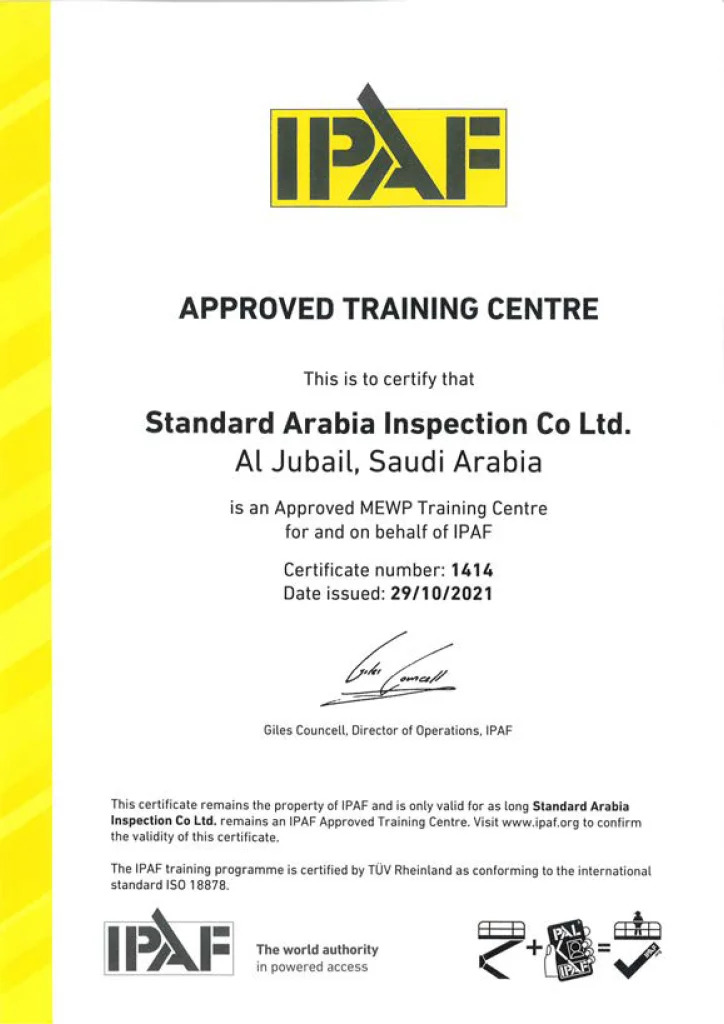 Standard Arabia is IPAF Approved Training Center & Full Member of LEEA with LEEA Approved Inspectors